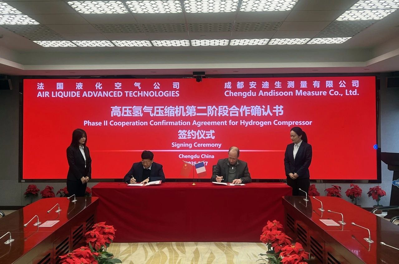 2025年2月27日,厚普股份全资子公司成都安迪生测量有限公司(以下简称“安迪生”)与法国液化空气集团(以下简称“法液空”)签署合作确认书,正式启动高压氢气液驱压缩机研发项目第二阶段合作。此次合作依托“国际研发+中国智造”协同模式,由法液空提供领先技术方案,安迪生负责产业化推进。此举标志着双方在氢能高端装备领域的合作进入加速新阶段。